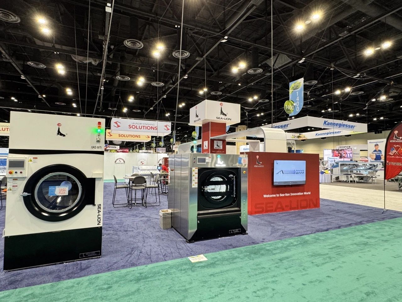 針對中小型洗滌廠普遍面臨的洗凈度問題、大型洗滌機構(gòu)的能源消耗難題,以及各大醫(yī)療衛(wèi)生機構(gòu)洗滌方案單一不全面等多種狀況。在本次國際盛會上,海獅機械集中展示了最新研發(fā)的高效節(jié)能洗滌烘干設(shè)備與智能化后整理設(shè)備,憑借在綠色環(huán)保、節(jié)能降耗、洗滌功效等方面的突出優(yōu)勢,成為展會焦點之一。