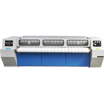 采用單電機(jī)驅(qū)動(dòng),功耗低,變頻調(diào)速系統(tǒng),可根據(jù)蒸汽溫度高低,布草種類(lèi),含水率等工況進(jìn)行8-40米/分鐘的熨平速度任意調(diào)節(jié)。
